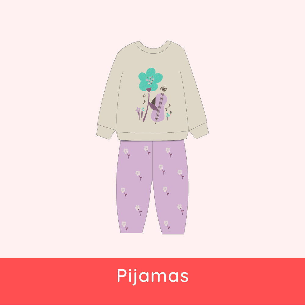 Pijama niña buzo + pantalón algodón surtida estampadaPijama niña buzo + pantalón algodón surtida estampada
