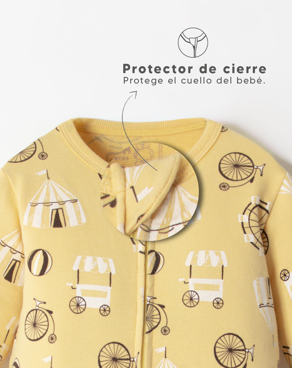 👶✨ Confeccionada en 100% algodón (fibra natural, suave y antialérgica que protege la piel del bebé), esta prenda mantiene al pequeño abrigado, cómodo y seguro. Su sistema de cremallera frontal con doble cierre facilita vestir y desvestir, y aporta practicidad durante el cambio de pañal. Los pies cubiertos brindan abrigo extra contra el frío, e incluyen antideslizante en tallas 9-12M, 12-18M y 18-24M para mayor seguridad en los primeros pasos. Además, cuenta con manopla incorporada en las tallas 0/0 y 0/3, que protege las manos y la carita del bebé. El cuello y las mangas en rib (acabado elástico) se adaptan mejor al cuerpo, ofreciendo comodidad adicional. Su material permite secado rápido, larga duración del color y fácil cuidado. La marquilla estampada es cómoda y segura para la piel del bebé, evitando roces. 🌱💛