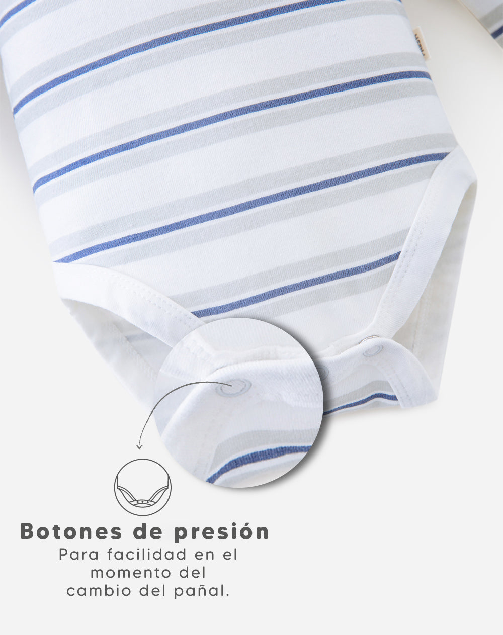 - Botones de presión en la perilla de la espalda y en la entrepierna pa ra mayor facilidad al vestir